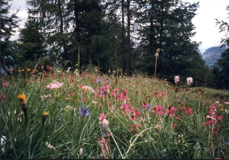 Fels, Bäche, Blumen, Wiesen, zum Rifugio Croda di Lago. Mein