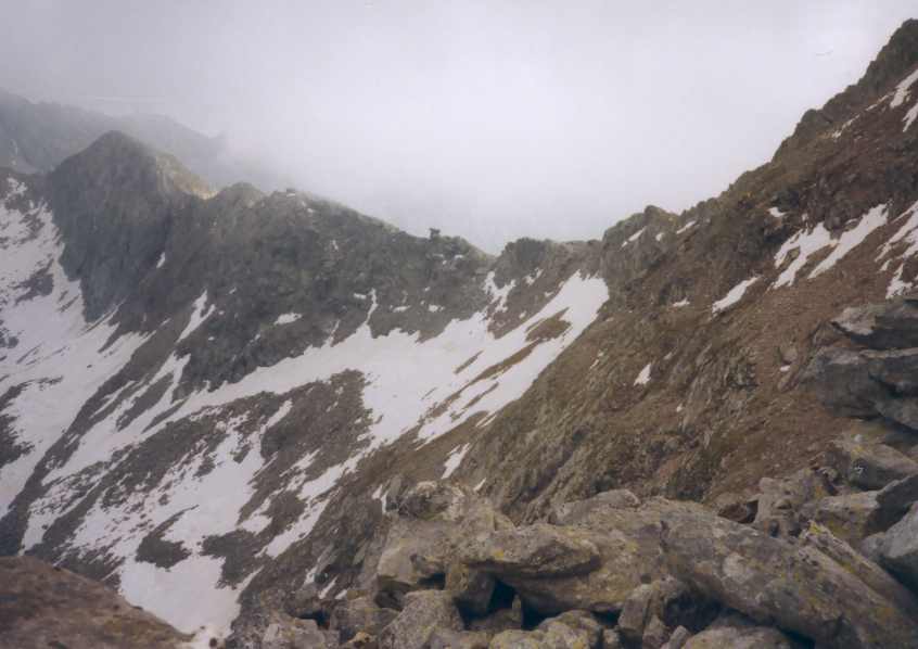 Rechts der vom Turlo nach Osten verlaufende Grat. Mitten darauf ein »kleiner« Steinklotz, der Piccolo Altare. Davor ist wohl der gleichnamige Pass, man kann wahrscheinlich von Rima aus auch diesen Weg nehmen. |