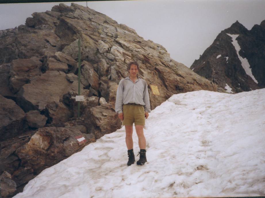 Hier in der Nähe des Monte Rosa trifft man auf andere Wanderer,- die Tour du Monte Rosa führt hier durch und ist wohl viel begangen. Vier ältere Japaner lieferten sich mit Wolfgang ein Wettrennen beim Aufstieg zum Turlo. Als sie uns schließlich überholten, fragten sie Wolfgang: »How old are You?«. Wolfgang ist, glaub ich, 64 alt. »Oh, then You are older than we!« Dann sagten sie auf unsere Nachfrage hin der Reihe nach: »I´m sixty one,- I´m sixty two, I´m sixty 3«. Ich zeigte lachend auf den Vierten: »Then You are 64!?« War aber nicht, sondern auch 61. 2 Wochen in Europa, 1 Woche Wandern in Österreich, und nun hier, ausgerechnet am Turlo,- wie kommen die da drauf. Sie hatten vor, noch bis Macugnaga ganz hinab ins Tal zu laufen,- ein weites Stück. Noch mehr taten uns die leid, die uns beim Abstieg entgegen kamen: Nicht nur, dass die Etappe von Anzascatal aus riesig ist mit gut 1500 Höhenmetern und auch etlichen flachen Kilometern, sondern jetzt war der gesamte letzte Teil, gut 300 Höhenmeter, auch noch verfirnt. Die meisten sahen schon recht alle aus, bevor sie das Firnfeld erreichten, und etwas spät war es eigentlich auch schon...
