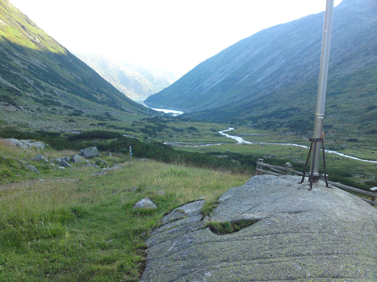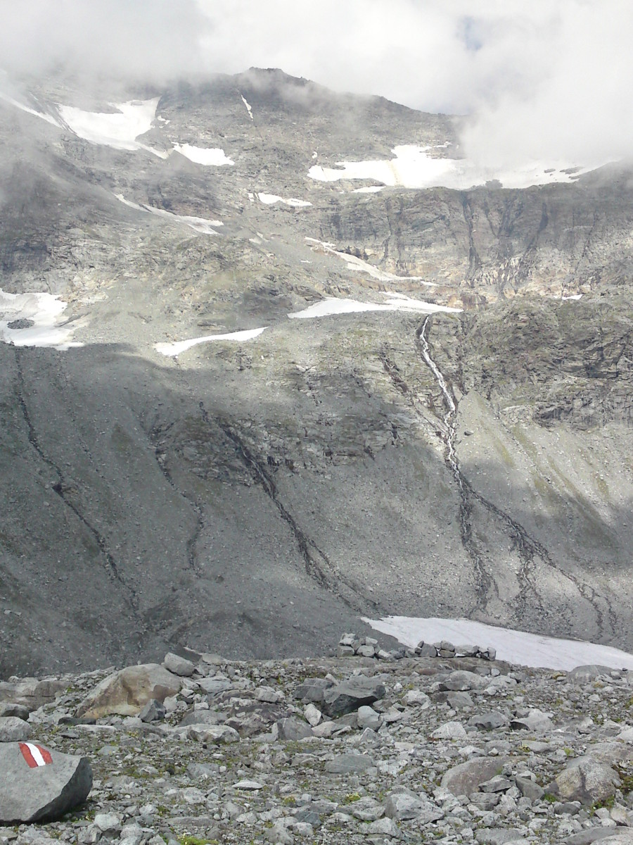 Anreise: (Nacht-)zug nach Spittal, vor dem Bahnhof Bus nach Gmünd. Leider fuhr der Bus samstags nicht weiter ins Maltatal (Dienstag und Donnerstag fährt sogar ein Bus bis zum Kölnbreinspeicher). Wir taten uns mit einem Paar aus Neukölln zusammen, das Taxi bis zur Gmündener Hütte kostete 50€, also für jeden 12,50€. Von dort brachte uns netterweise der Neuköllner mit seinem Auto zum Berghotel Malta. Hagel und Gewitter, auf den 2 Std. (flach, Fahrweg) zur Osnabrücker Hütte werden wir nass. Unterstand unterwegs bei einer Gedenkstätte: 24 (!) Arbeiter sind beim Bau des Kölnbreinspeichers ums Leben gekommen.