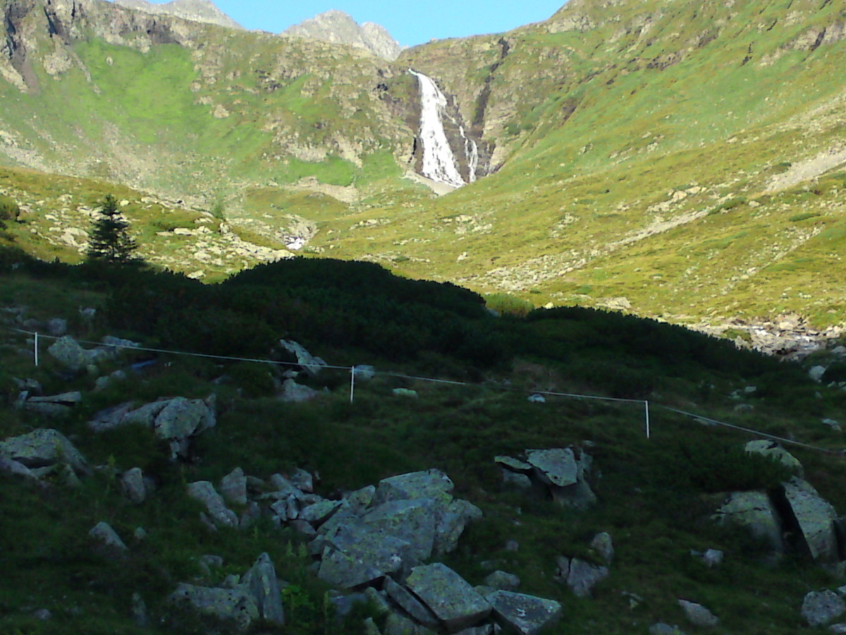 von Osnabrücker Hütte zum Fallbach-Fall. Rechts von diesem