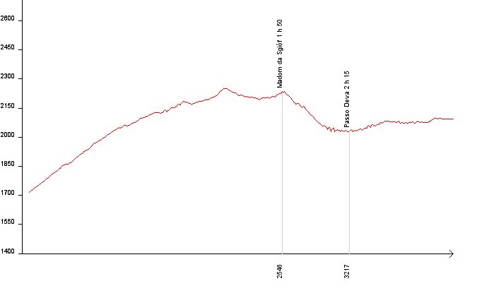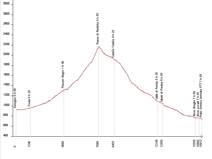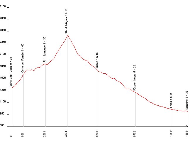 m tiefer), und 400 m Anstieg mehr ab Btta di Orgnana: